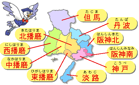 神戸、阪神南、阪神北、東播磨、北播磨、中播磨、西播磨、但馬、丹波、淡路