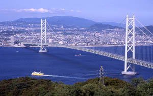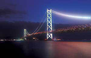 明石海峡大橋(あかしかいきょうおおはし)愛称(あいしょう):パールブリッジ神戸市(こうべし)・淡路市(あわじし)