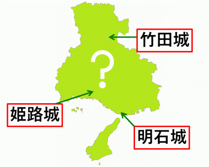 こたえを次から選(えら)んでね! 竹田城 | 姫路城| 明石城