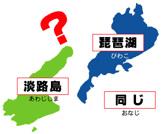 こたえを次から選(えら)んでね!琵琶湖|淡路島|同じ大きさ