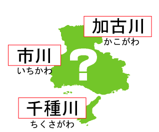 こたえを次から選(えら)んでね!市川(いちかわ)|加古川(かこがわ)|千種川(ちくさがわ)