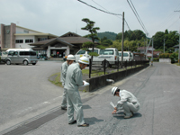 宮城県大河原土木事務所に中長期派遣されている総合土木職の職員4名は、亘理町内で町道の路面復旧業務を行っています。図面を元に町道の破損箇所を一つひとつ確認してまわっています。派遣職員の兵庫県道路企画課安井主査は「普通では携われない仕事。技術職としてこのような支援が出来て光栄です」と話しています。被災地の復興は、こうした地道な作業の積み重ねで成り立っています。大河原土木事務所の久保田所長は「派遣職員とのコミュニケーションを大事にし、阪神・淡路大震災からの復旧・復興のノウハウなどを教えてほしい」と話していました。東日本大震災からの災害復旧業務に従事することで、兵庫県の派遣職員にとっても、将来の災害に備えた大きな経験となるはずです。 |