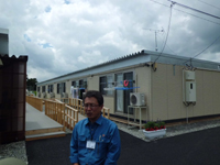 南三陸町に6月から来年3月末まで派遣されている兵庫県都市政策課松浦課長補佐は、町建設課で業務を行っています。8月までは仮設住宅の建設・入居を進め、それ以降はまちづくりのための復興計画策定に携わる予定です。松浦課長補佐は震災発生直後にも一度南三陸町に派遣されており、今回が2回目の派遣です。「第2のふるさとを復興させる思いで頑張りたい」と話しています。 |
