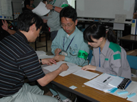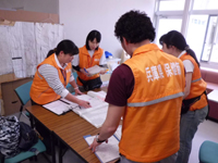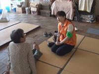 石巻市支援本部では兵庫県や加西市の保健師が避難者の健康管理支援のため避難所を巡回しています。湊中学校では、38名の避難者が現在も生活していますが、ようやくもうすぐ電気が使えるようになるようです。被災者の心情に配慮しながら、穏やかに丁寧に、しかし笑顔と明るい声を絶やさずに話をして被災者の健康状況などを聞き取っています。 |