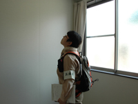 仮設住宅の建設現場となっている石巻市の新栄東公園で、兵庫県の応援職員が宮城県職員とともに仮設住宅の完了検査を行っています。手すりが重みに耐えられるかなど入居者目線での検査を心がけています。兵庫県営繕課國分主査は「コミュニティを大事にし住民同士が手をとりあって復興していってほしい」と今後の願いを語っています。 |