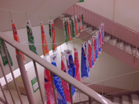 石巻市役所内に掲げられた加東市からの鯉のぼり