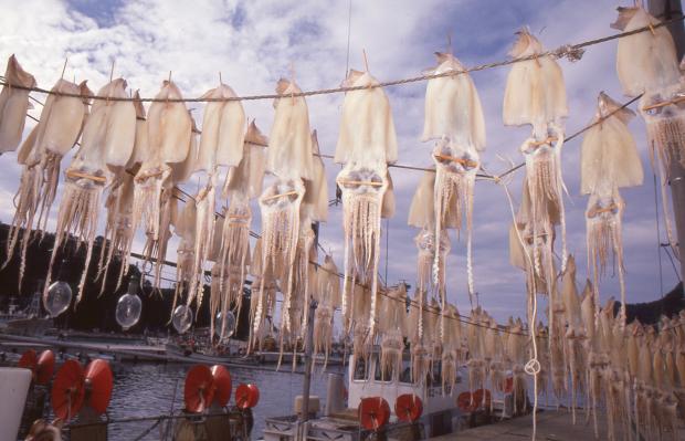 ヒョーゴアーカイブスホーム > 但馬海岸でイカを干す