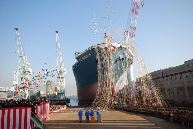 神戸港での進水式の様子
