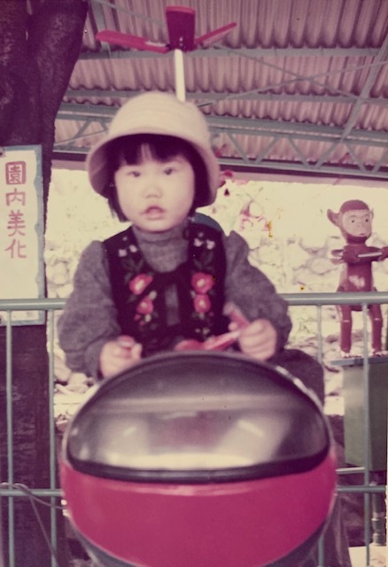 王子動物園に行くといつもコインで動く飛行機に乗りました。後ろに見えているのはチンパンジーのしんちゃんの人形でしょうか。〔令和2年度応募写真〕