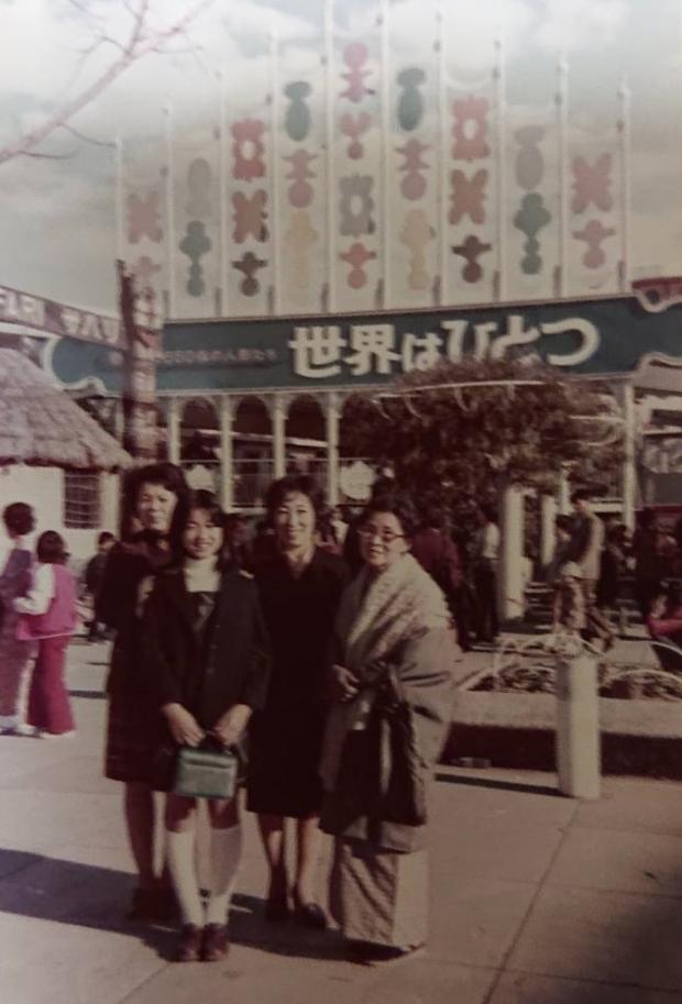「世界はひとつ」という建物の前。後で考えると、世界のいろんな国の景色や人形が展示されたこの建物はディズニーの「イッツ・ア・スモールワールド」を真似た施設だったんですね。うっすら記憶に残っています。〔令和2年度応募写真〕