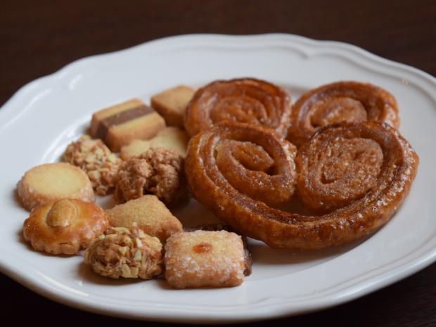 フロインドリーブのハート型のパイ「ミミ」はバター風味で小さい頃から大好きでした。もともと教会だったとてもおしゃれなカフェで、学生時代はよくお茶を飲みながら友達とおしゃべりしました。とても思い出深い一品です。〔令和2年度応募写真〕