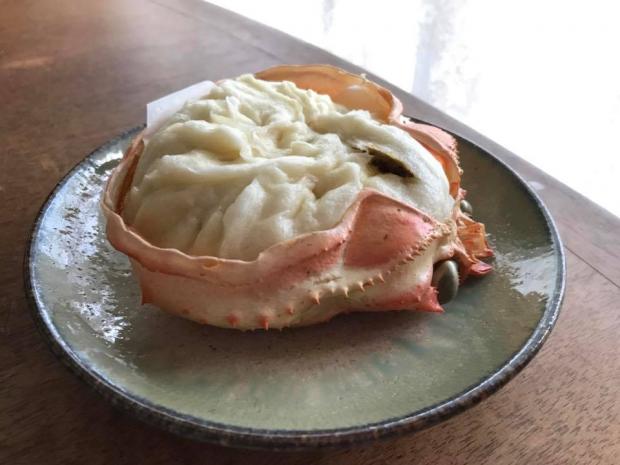 カニで知られる香住にある中華料理店「白龍」のかにみそまん。甲羅の上にのっている姿にもびっくりでしたが、紅ズワイガニの風味と味がとても良く、思わず追加で取り寄せました。