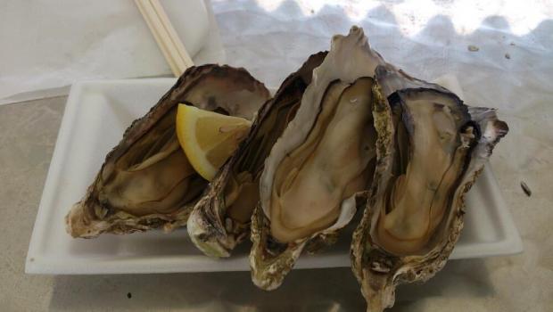 御津町の室津港にて。焼き牡蠣の無料試食を楽しみ、その日一番美味しいと感じたお店で殻付き牡蠣を買うのが我が家の定番です。道中にある生牡蠣の自動販売機で追加購入することもあるくらいです。〔令和2年度応募写真〕
