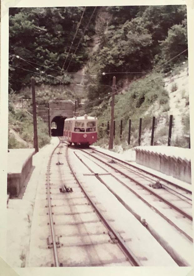 家族旅行で摩耶に行った時の写真です。まだ幼かったのですが、初めてケーブルカーに乗ったので今でも何となく覚えています。ちょうど中間地点ですれ違う対向車両を父が写してくれたものです。