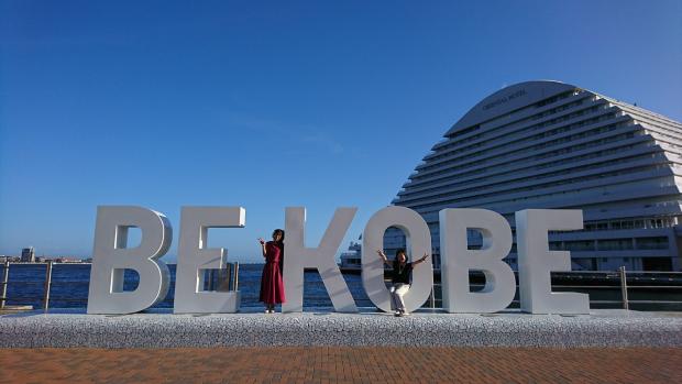 神戸メリケンパークにあるBE KOBE。海を臨みながら、友人とBE KOBEのモニュメントに溶けこんで、パチリと記念撮影。「人のために力を尽くす」という思いが込められたメッセージ。大好きな神戸を、兵庫を、応援しています!〔令和2年度応募写真〕