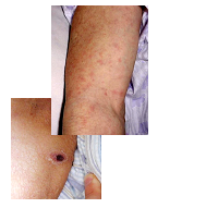 (症状) 急激な発熱(38.0℃以上)、悪寒、頭痛、全身倦怠感などが現れ、手のひらや手足・顔面に、大小不同の赤い発疹(紅斑)が現れますが、かゆみや痛みは感じないのが特徴です。