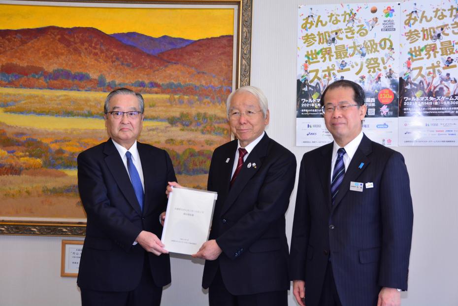 平成31年3月18日(月曜日)に検討委員会の西村委員長から井戸知事へ、報告書を手交いただきました。