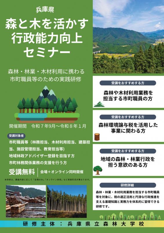 このため、森林・林業に関する基礎から実務までの広範囲な知識や技術について、専門講師による講義により、市町等行政職員のスキルアップや市町を支援する地域林政アドバイザーの育成を目指すセミナーを開講いたします。