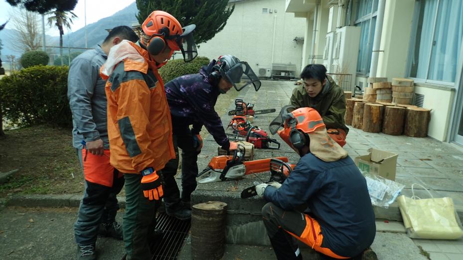 また今年度から、チェーンソーのメンテナンスについても新しく実習メニューに追加しました。