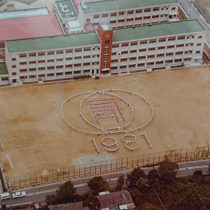 - 小さい頃、親に連れられて魚釣りしてた溜め池にできた小学校。引っ越しもしていないのに学区変更で転校したことを思い出します。開校を記念してみんなで校庭に出て、初めて撮った航空写真は忘れられません。