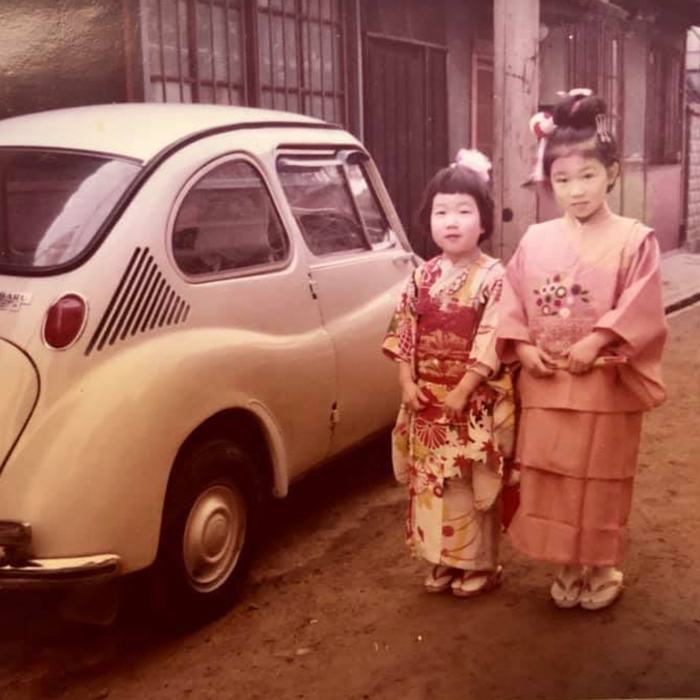 - クルマはスバル。1970年、須磨の自宅前で