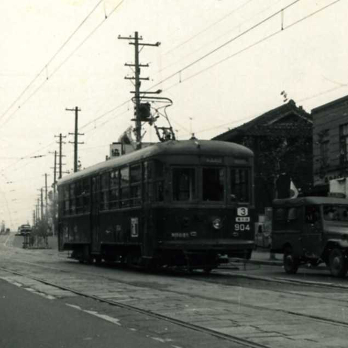 - 詳細な場所を特定することができませんが、神戸市内を走る市電と町並みです。今では神戸の町並みもすっかり変わってしまいましたが、とても貴重なワンシーンです。