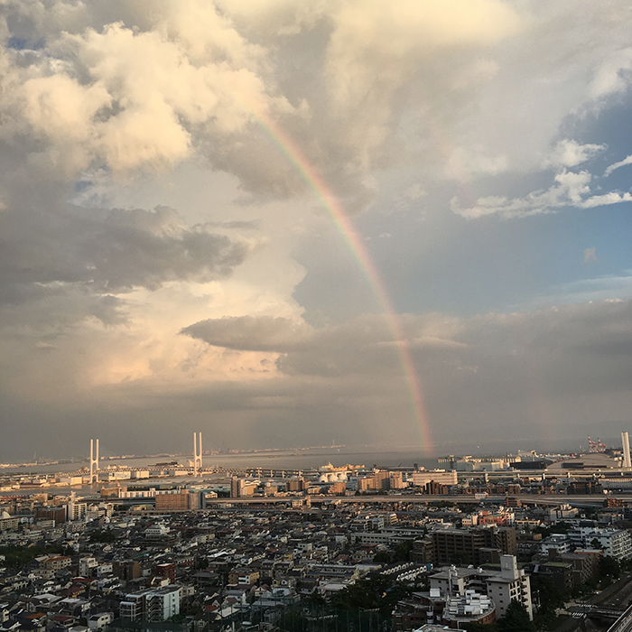 - コロナで外出できない日が続き憂鬱になりつつある時、小学生の娘と二人ベランダから外を見ると、東灘の町並みの先に大きくて綺麗な虹が空高くまで伸びていて、とても心が癒されました。虹の美しさを再確認した瞬間でした。