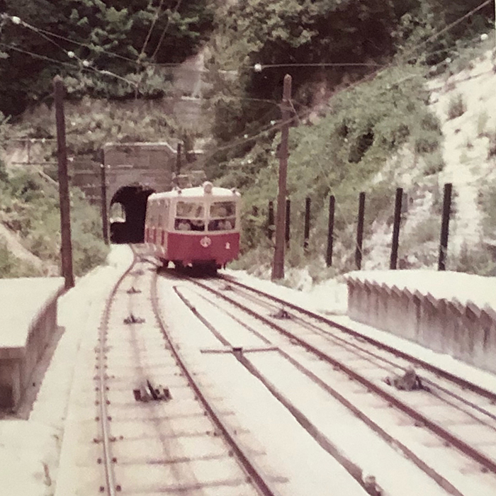- 家族旅行で摩耶に行った時の写真です。まだ幼かったのですが、初めてケーブルカーに乗ったので今でも何となく覚えています。ちょうど中間地点ですれ違う対向車両を父が写してくれたものです。
