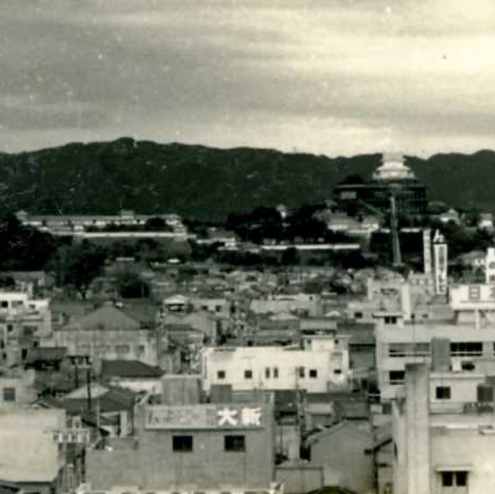 - 姫路山陽百貨店屋上から見た昭和大修理終了直後の姫路城です。姫路の町並みを振り返る大切な一枚です。