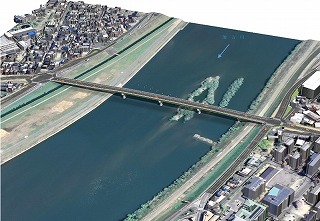 国道2号加古川橋は、大正13年に作られ約100年が経過しました。国道2号は4車線化し一方通行を解除する予定ですが、治水上も安全になります。橋脚は16基が5基に減少。橋の基礎は地面から18.5m掘り下げ、河床掘削も進みます。安全なまちに向け頑張ります。