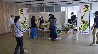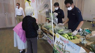 とれたてスイートコーンを販売。ダイヤの粒と生で食べてもほっぺたが落ちる甘さ。販売開始前から行列ができ、急遽10分繰り上げて販売。飛ぶように売れ、わずか30分で完売。ふぁ~みんSHOPでは、7月12日(日曜日)までフェアを開催し販売しています。