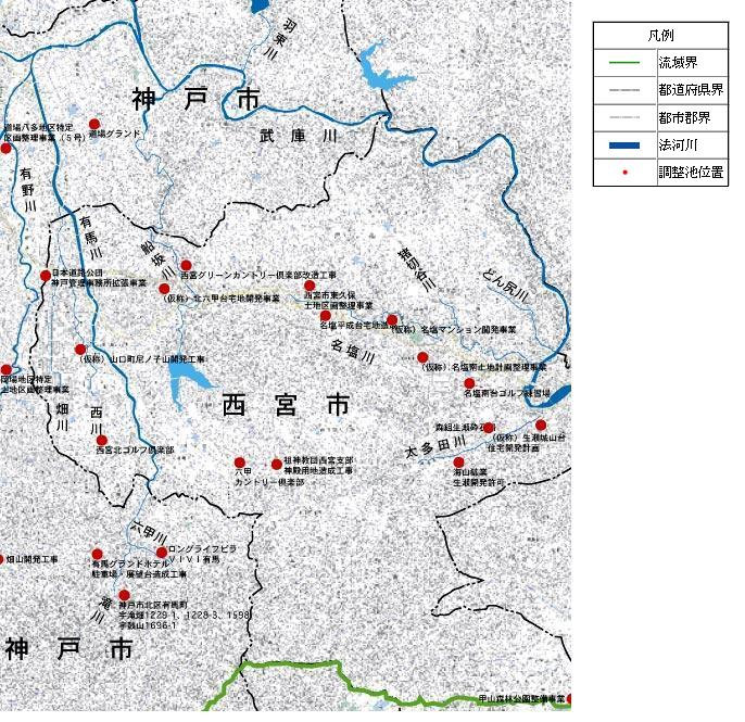ホーム > まちづくり・環境 > 道路・港湾・河川 > 河川整備 > 防災調整池位置図