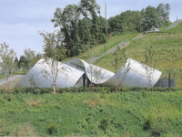 この施設自身をオブジェとして公園の景観に役立たせるため、巻いたリボンをふわっと起伏のある草原の上に置いたような楽しいデザインになっています。