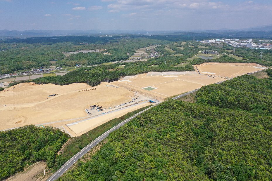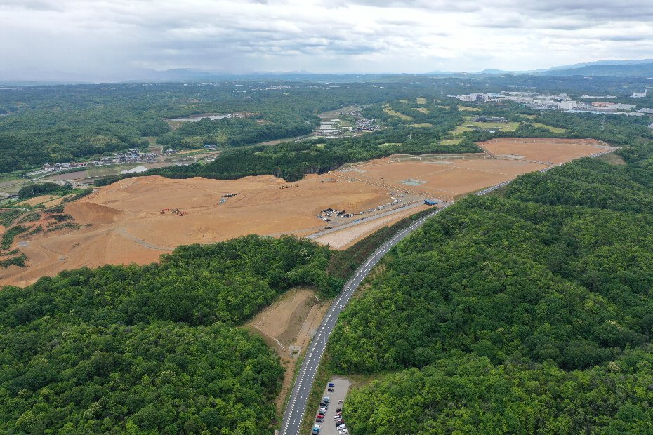 ホーム > しごと・産業 > 企業立地 > 産業用地(企業庁) > ひょうご小野産業団地 > ひょうご小野産業団地造成工事の進捗状況(ドローン空撮:南西側から)