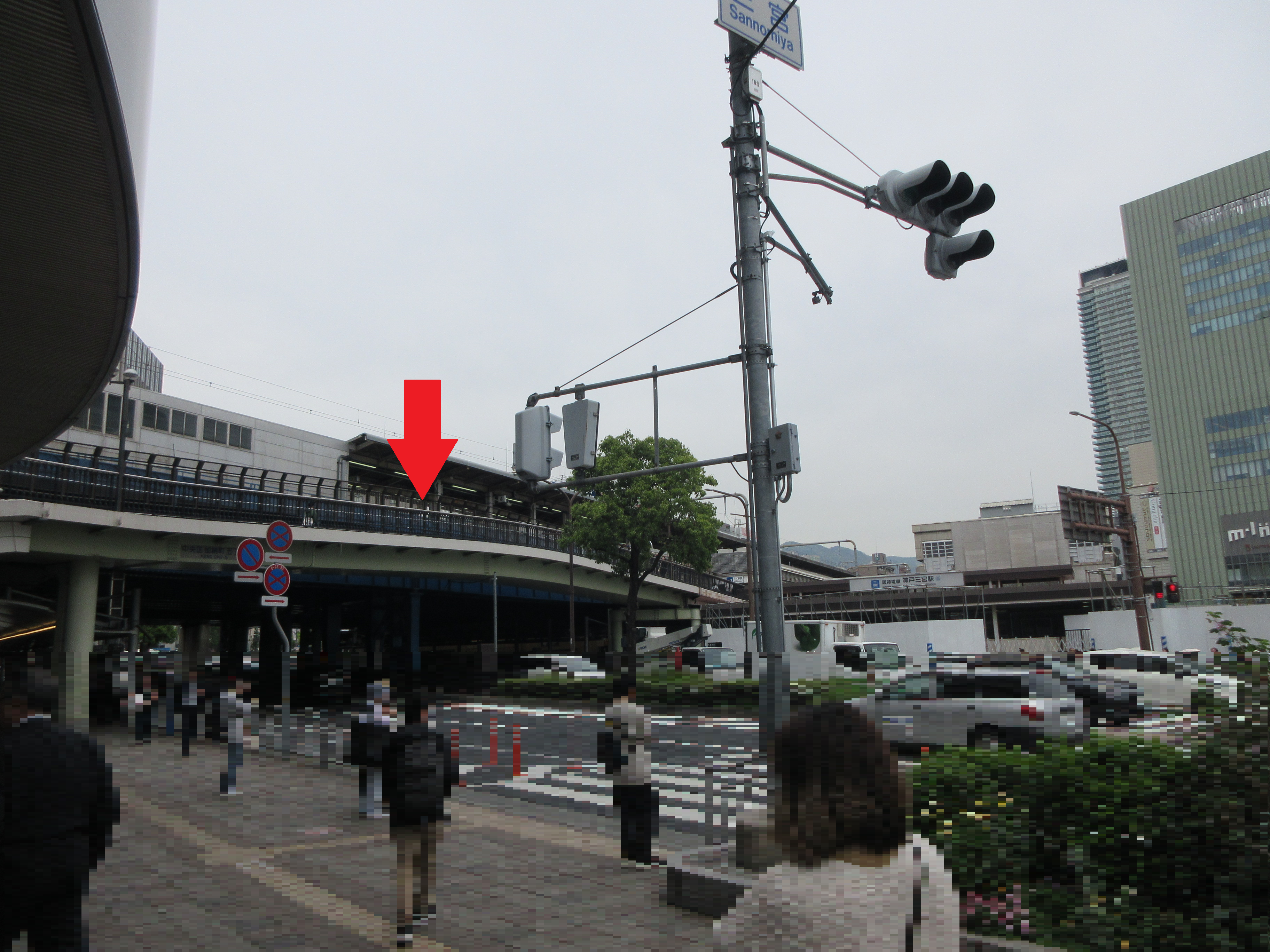 | JR三ノ宮駅周高架機銃掃射痕(横断歩道からの位置関係) |