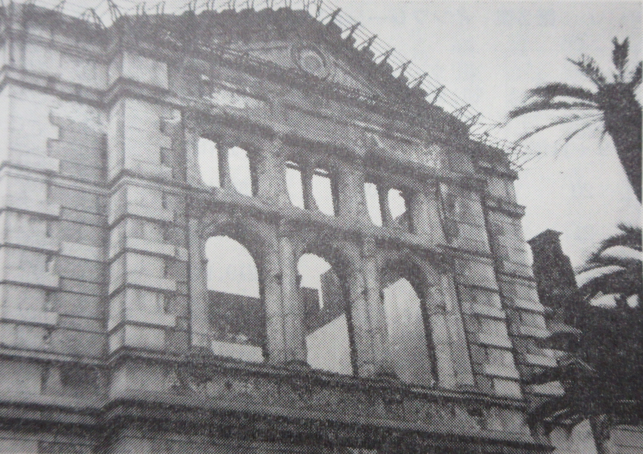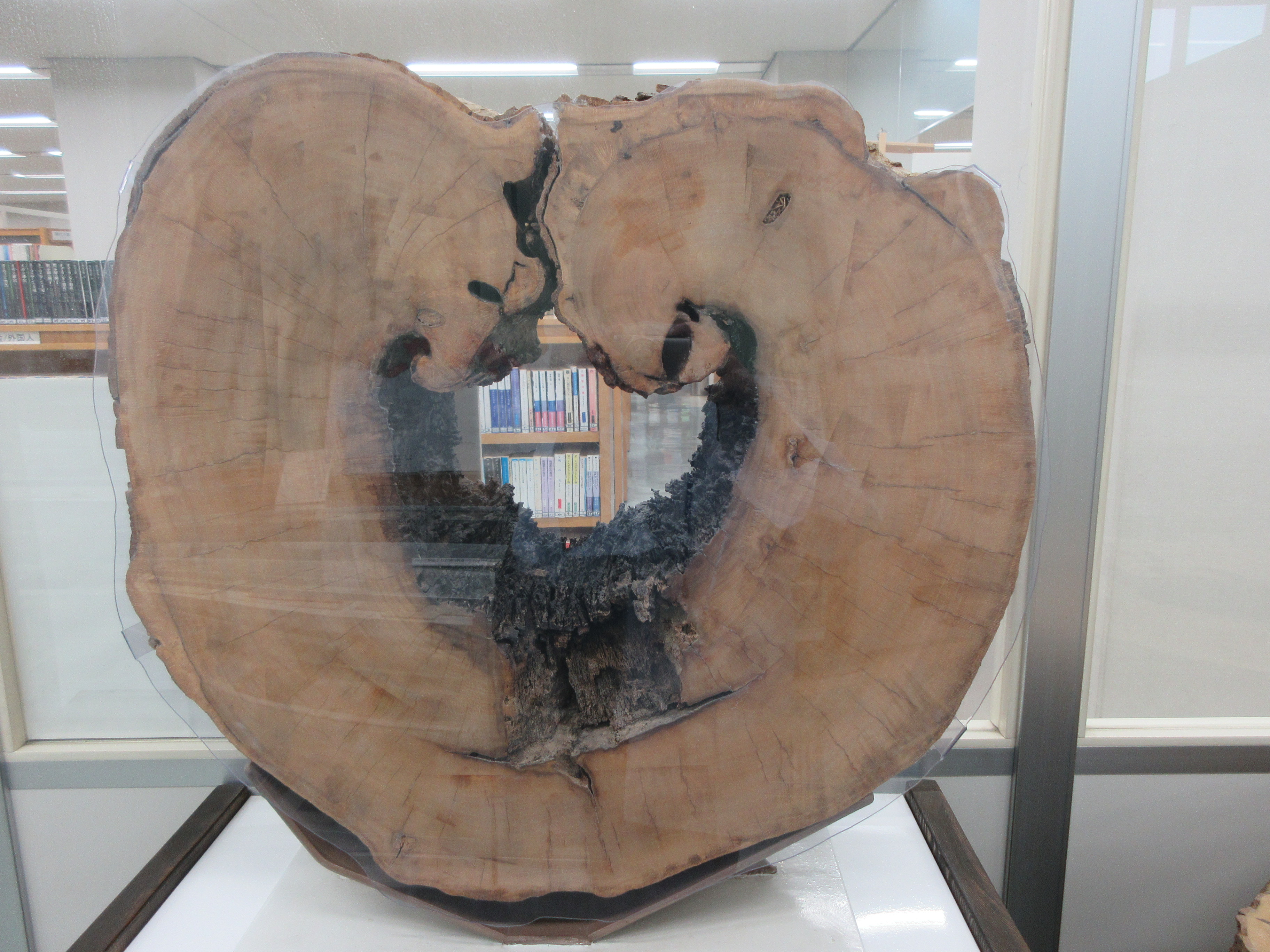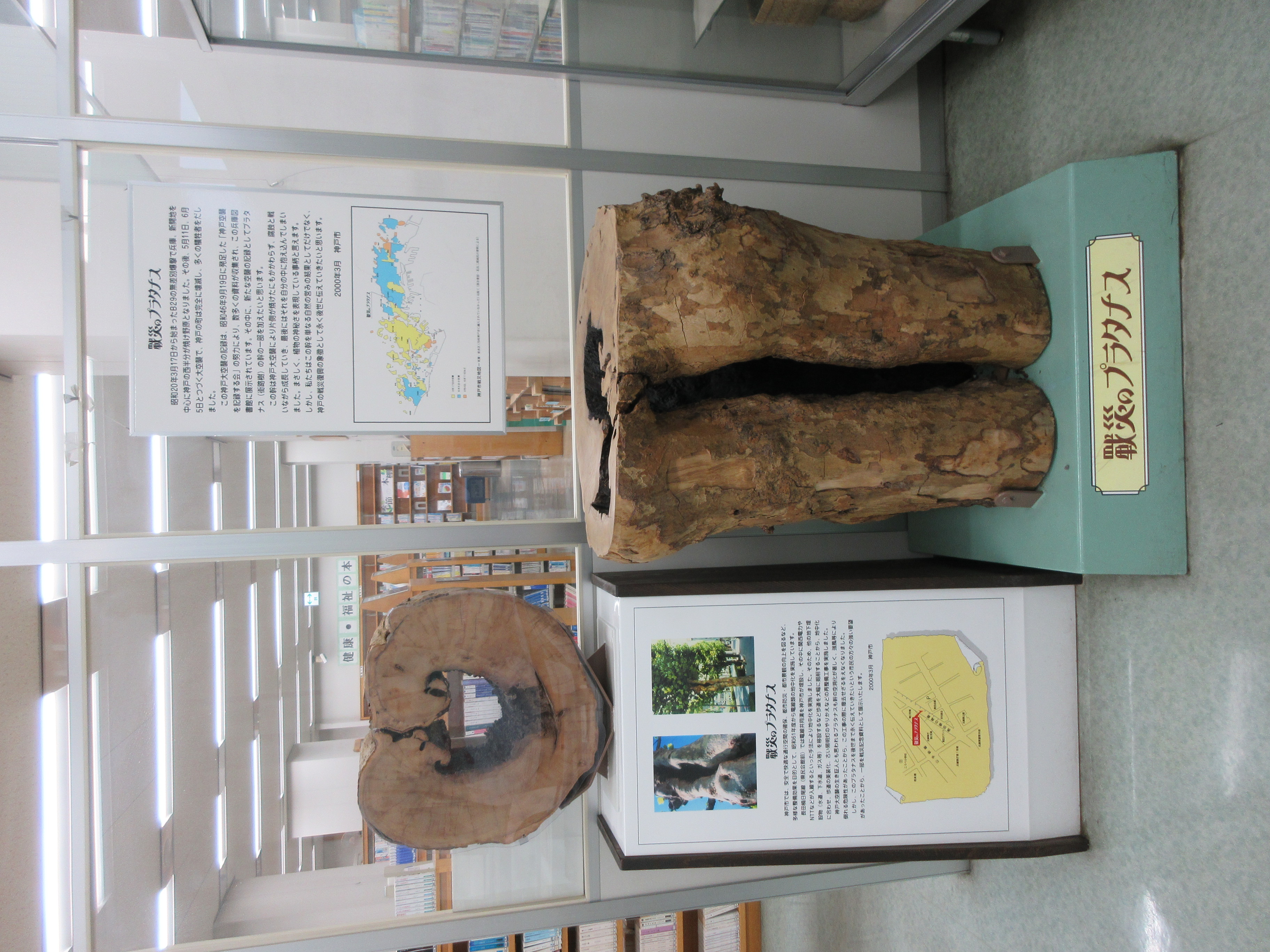 | 内部が焼け落ちた県公館(県議会史第四輯第一巻より) | プラタナスの幹断面(兵庫図書館保存) |