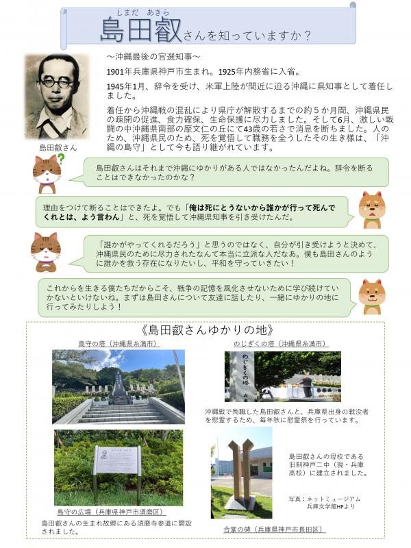みなさんは、兵庫県神戸市須磨区出身の「島田叡氏」をご存じですか。