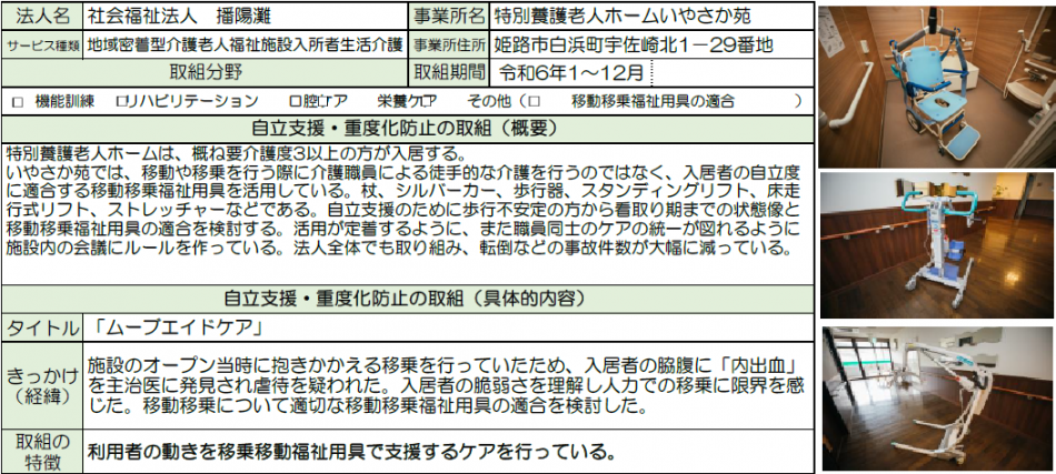 | 令和6年度 | 社会福祉法人播陽灘 特別養護老人ホームいやさか苑 |