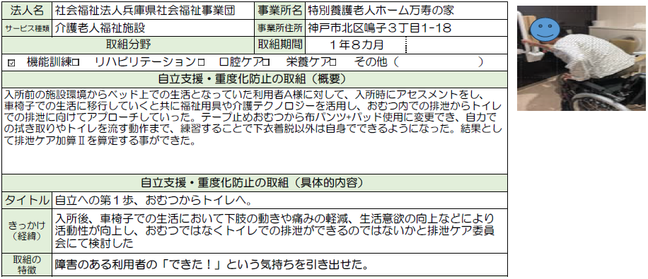 | 令和6年度 | 社会福祉法人兵庫県社会福祉事業団 特別養護老人ホーム万寿の家 |