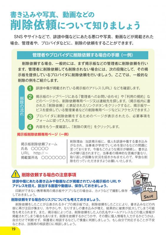 ただし、削除依頼をしたことが公表されるタイプの掲示板では、削除依頼をしたことにより、書き込みなどの内容に再び注目が集まり、冷やかしやなりすましの書き込みが増え、結果的に被害が拡大してしまう可能性も考えられます。