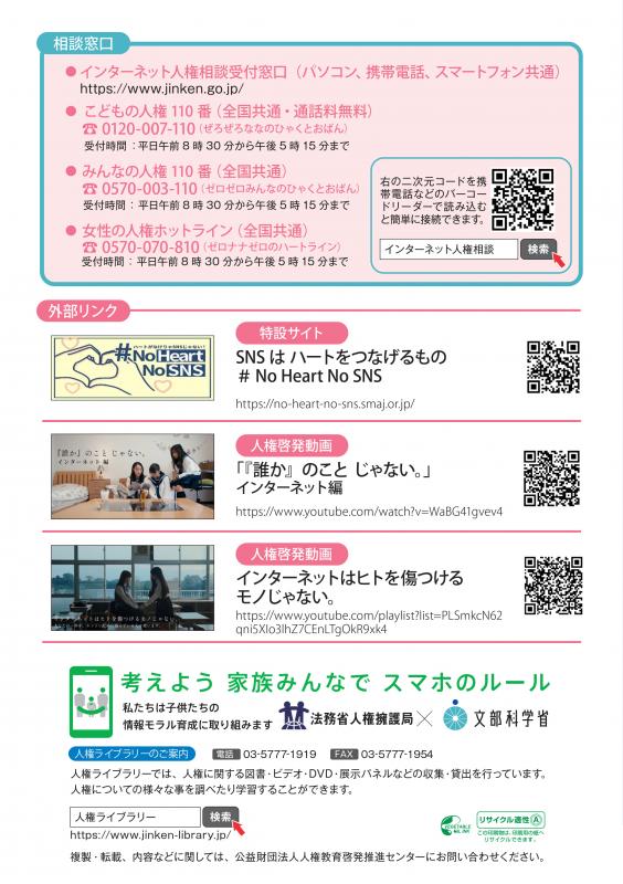 啓発冊子「あなたは大丈夫?-考えよう!インターネットと人権-」((公財)人権教育啓発推進センター)より