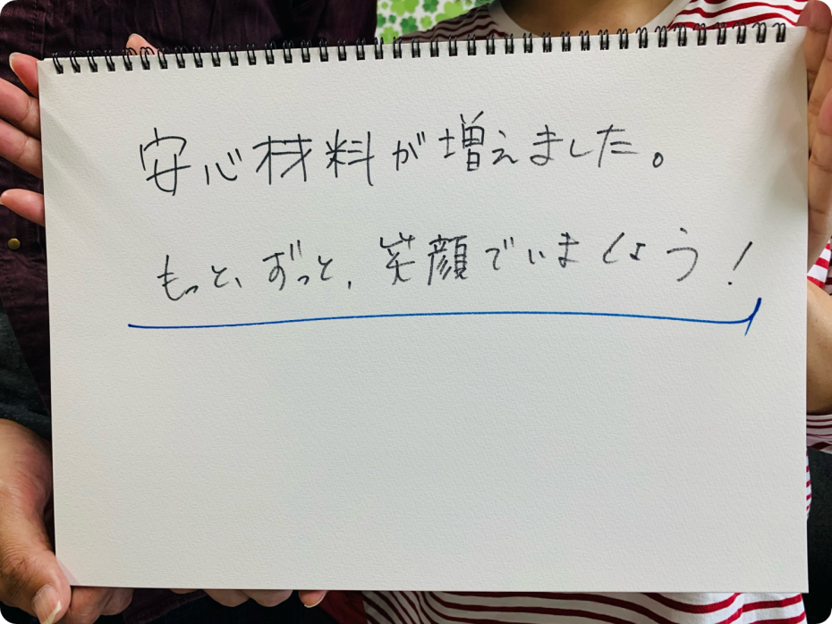 安心材料が増えました。もっと、ずっと、笑顔でいましょう! |
