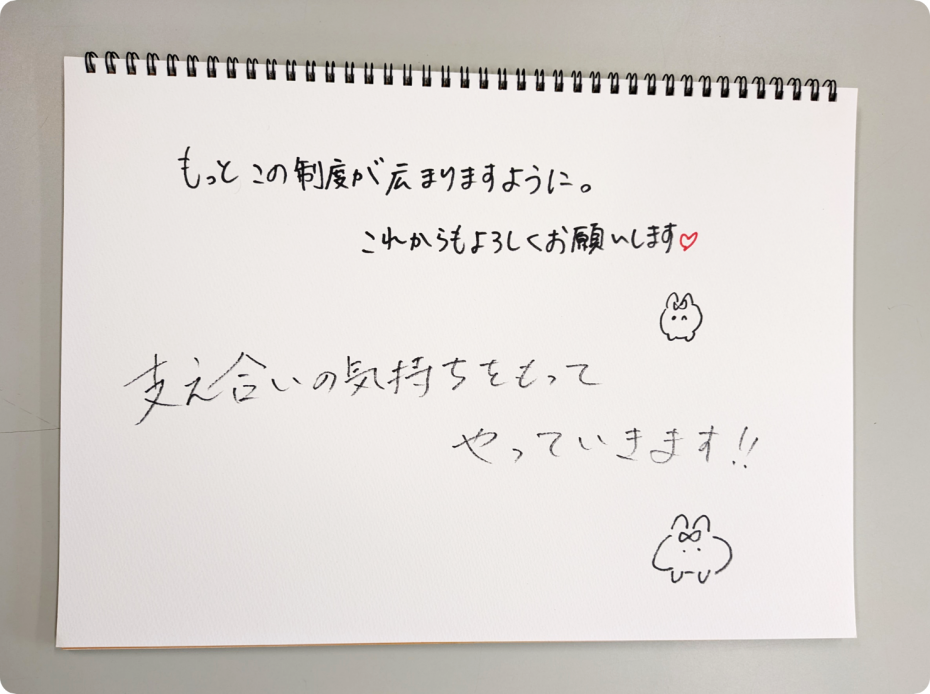 もっとこの制度が広まりますように。これからもよろしくお願いします |