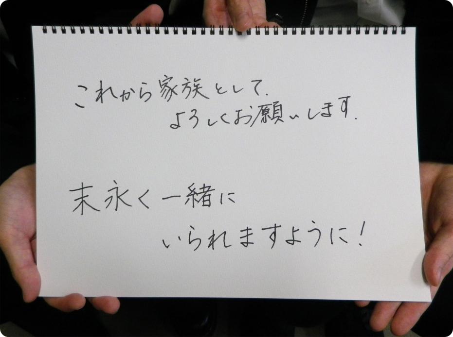 これから家族としてよろしくお願いします末永く一緒にいられますように! |