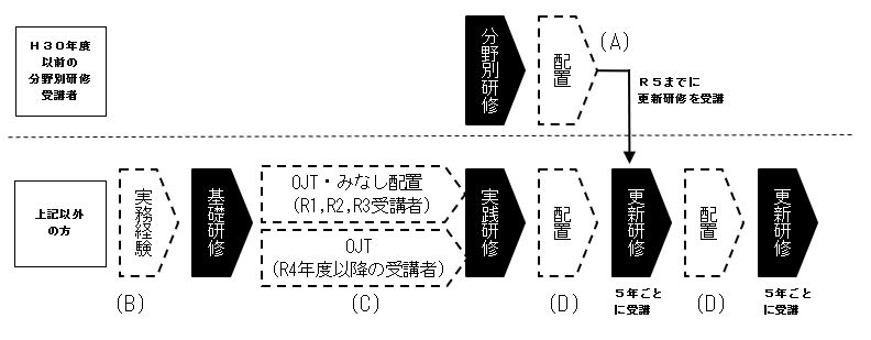 ※期限内に5年毎の更新研修が受講できなかった方は、実践研修の受講が必要です。