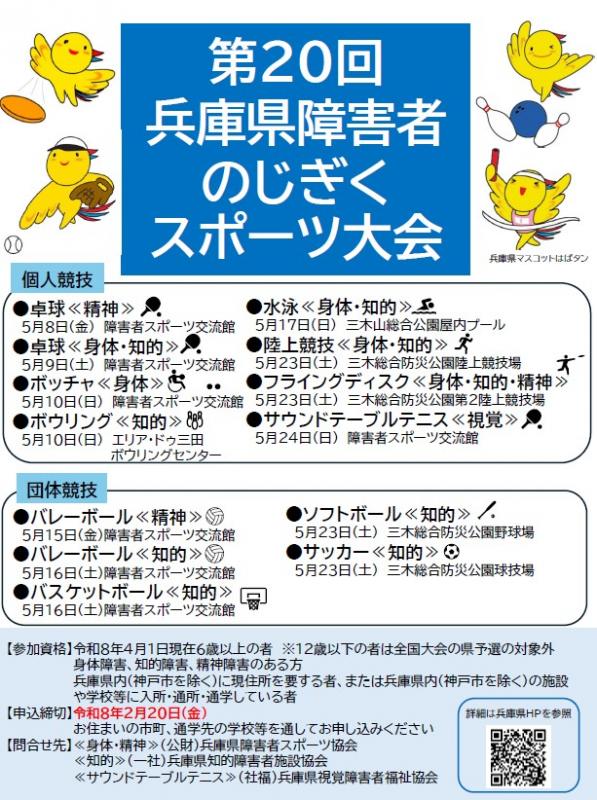 第20回兵庫県障害者のじぎくスポーツ大会を開催します。