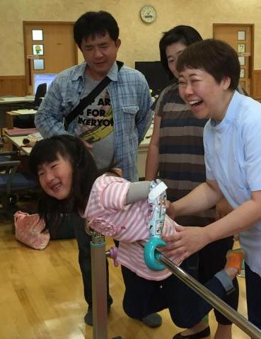 奈良では、残念ながら、病院や施設がありませんでした。私どもも、手探り、手探りで、ようやく兵庫県立リハビリテーション中央病院にたどり着くことができました。そして、何度か受診させていただいた頃、「小児筋電義手バンクからの貸与者の第1号に選ばれたよ」と言っていただき、突然のことで、夫婦で大変驚き、喜んだのを覚えております。本人が、一番喜んでいました。また、いただいたのは、義手もそうですが、何より本人の自信です。