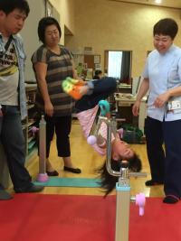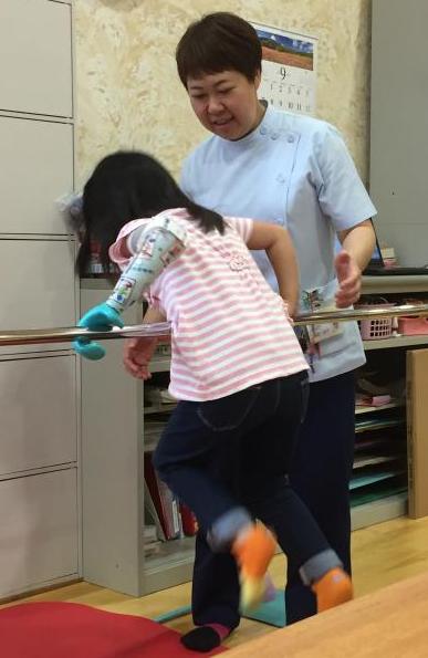 歩叶(ほのか)ちゃんは、月2回ほど奈良県から兵庫県まで訓練に通っています。平成27年9月24日には、ビーズのブレスレット作りと鉄棒の前回りにチャレンジしました。