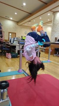 最初の頃は戸惑いもあった歩叶(ほのか)ちゃんですが、何回も何回もチャレンジして、最近では一人で前回りができるようになりました。