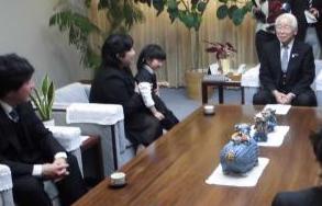 初めての貸与を記念して、兵庫県庁で貸与式を実施しました。知事から筋電義手を受け取る歩叶(ほのか)ちゃんです。早速装着して筋電義手をグー、パーとひらいてみました。そして、「ビーズをやってみたい」「鉄棒やうんていをやってみたい」と夢を話してくれました。